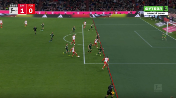 第18分钟,拜仁角球机会,后点德里赫特高高跃起头球攻门,这球顶偏了。↓