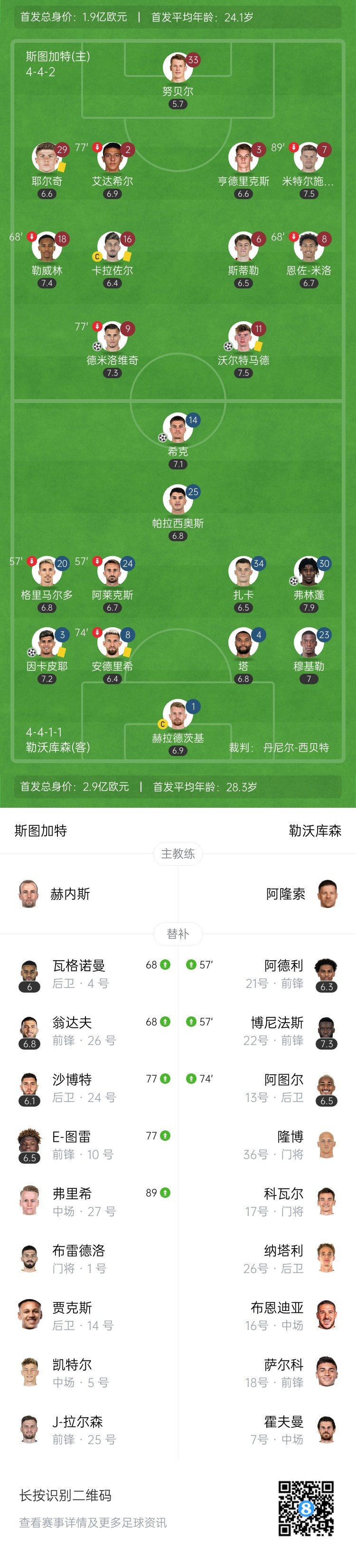 【双方首发及换人信息】