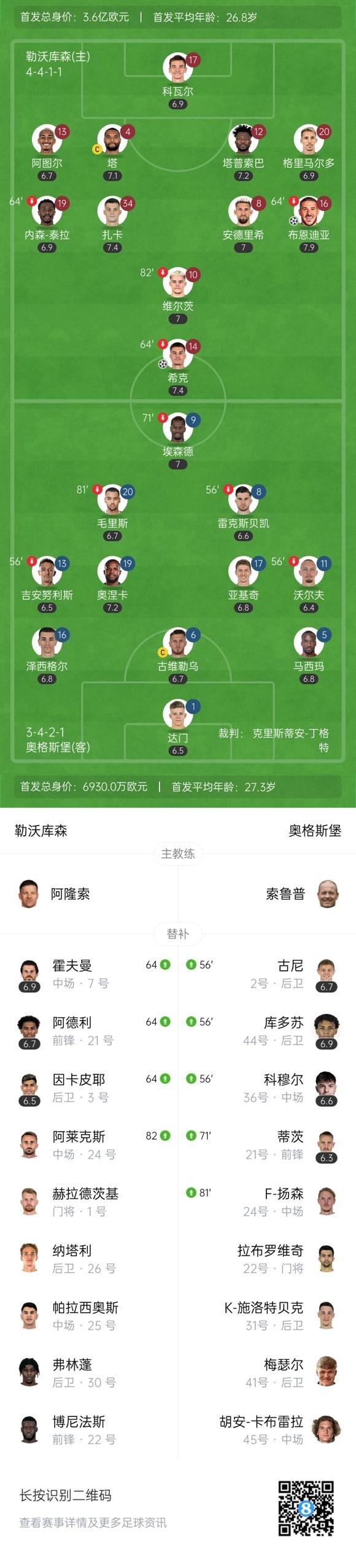第24分钟,维尔茨左路传到禁区后点内特泰拉头球破门,随后裁判吹罚越位在先进球无效。↓