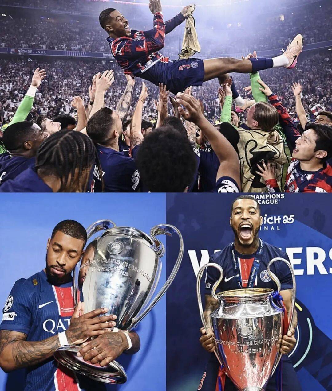 24-25赛季,金彭贝各项赛事代表大巴黎出战5场比赛,法甲2场,欧冠1场,不过他也终于和大巴黎一同圆梦,拿到了欧冠冠军。