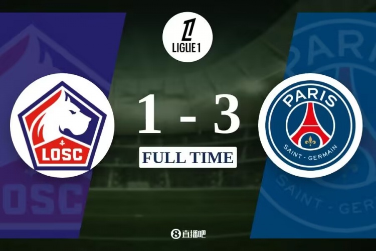 全场比赛结束,巴黎3-1里尔。
