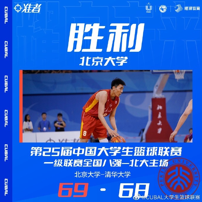 5月28日讯 CUBAL全国八强赛继续进行,首轮最后一场比赛迎来焦点之战,北京大学主场迎战清华大学。作为争论已久的五道口德比,清北大战在八强相遇,在之前的分区赛和淘汰赛清华大学8胜0负未尝败绩,而北京大学也是8胜2负紧随其后,面对双回合比赛算总分的赛制,实力强劲的两队分分必争。