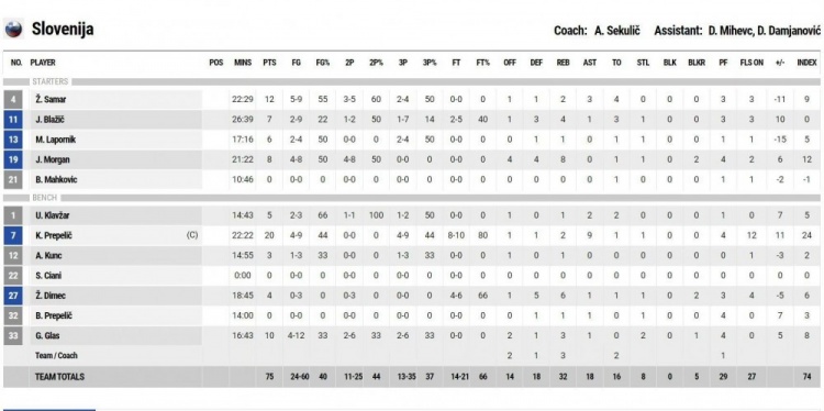 比赛开始,双方势均力敌,中国男篮外线手感不佳,但周琦和胡金秋轮番杀伤内线连续拿分,斯洛文尼亚不断通过罚球咬住,双方首节战成17平。次节中国男篮率先发力,多点开花打出9-2的攻势一度取得两位数领先,斯洛文尼亚连中三分回敬8-0的攻击波,半场战罢中国男篮36-31领先5分。易边再战,中国男篮通过防守端的出色表现和篮板优势,加上周琦的罚球重获两位数领先,斯洛文尼亚三分三连击迅速缩小分差,崔永熙三分帮助球队领先7分结束第三节。末节决战,中国男篮连续打铁失误,斯洛文尼亚一波10-0强势反超,赵睿挺身而出连得7分,双方争夺陷入白热化,关键时刻斯洛文尼亚三分三连击,中国男篮苦苦追赶无果,以73-75遗憾告负。