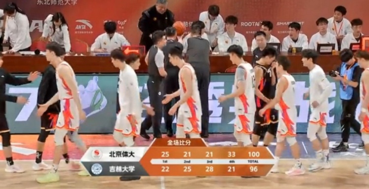 最后一节,吉林大学刚开始还表现稳定保持两位数优势,但第四节后半程在蒋茂林的出色发挥下北京体育大学掀起16-3的高潮追平比分,随后两队连续打平,黄佳明关键四罚全中锁定胜局。全场比赛结束,北京体育大学100-96力克吉林大学。