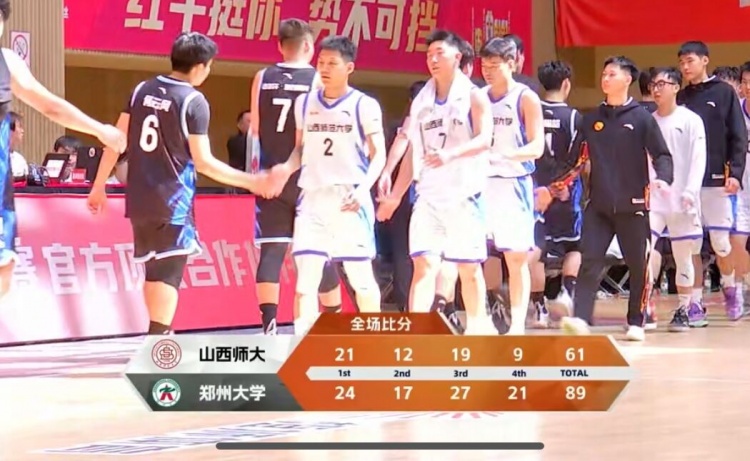 末节决战,范继昂联手张力强继续助山西师大追分,但刘炳志三分能强势回应,郑州大学牢牢掌握着十几分领先。山西师大突然断电,高乾有抢断有助攻,达尔汗和常浩翔又是接连三分命中,郑州大学直接一波14-0带走比赛,最终郑州大学89-61轻取山西师大,拿到第9名。