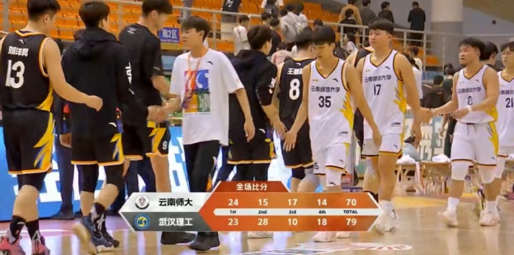 末节比赛,双方的得分依旧很困难,并且都是频频出现失误,云南师大将分差追到最小时只有4分,不过之后没有再获得继续追赶的机会,最终武汉理工79-70力克云南师大迎来连胜。