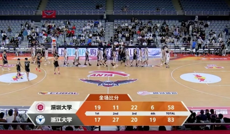 末节决战,深圳大学上来又是突然断电,打了近6分多钟仅得2分,石尔登三分命中,张烜睿里突外投取分,丁小峰抢断反击上篮,浙江大学12-2攻击波一举拉开20分以上领先。龙佳恩紧急止血,陈嘉炜也造成三罚,但贾亦杰三分还能回应,最终浙江大学83-58轻取深圳大学。