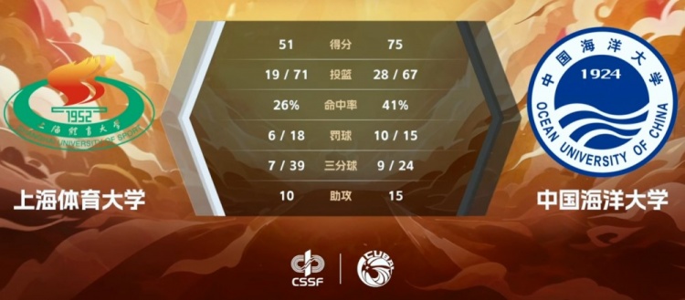 末节双方依旧僵持拉锯,冷佳乐的三分进球和章雨桐的2+1帮助上海体大在开局对决中稍占上风,不过对于大比分来说帮助不大,中国海大优势巨大稳扎稳打并将大比分领先保持到最后。最终,中国海洋大学轻取上海体育大学迎来开门红。