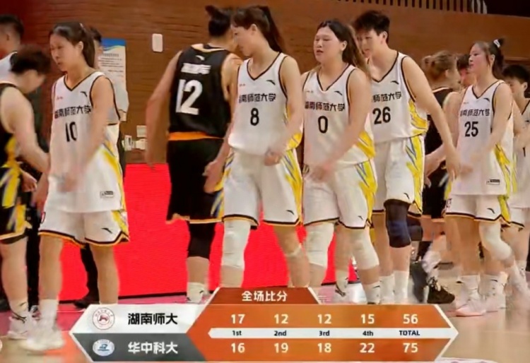 末节决战,沈思榆继续突破连续追分,但华中科大始终能回应,聂云翮三分扩大领先,华中科大牢牢掌握十几分领先。随后双方继续拉锯战,高琳昕换上来后连续内线造杀伤或者取分帮助湖南师大追分,张博雅二次进攻压哨中投命中,最终华中科大75-56战胜湖南师大。