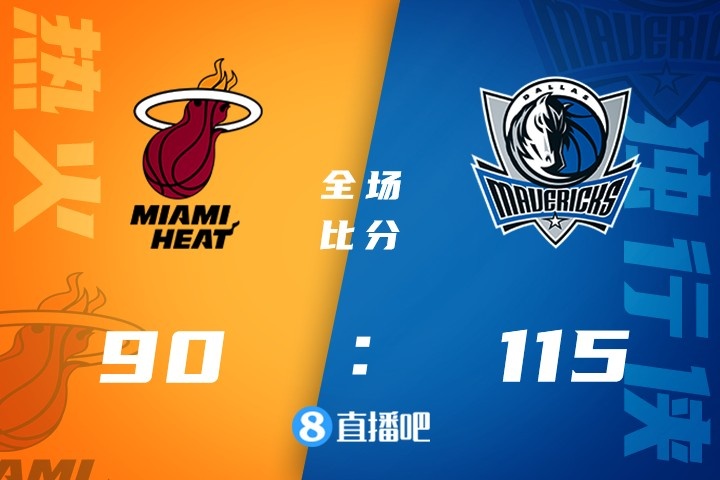开场后鲍威尔首先内线表现活跃连续打进,热火多点开花紧追不舍,随后独行侠外线开张连中三分将比分拉开,热火夹击东契奇给了独行侠外线不少空档。第二节回来东契奇下场休息丁威迪开启得分模式,奥拉迪波毫不示弱也接连回应,独行侠始终保持着不错的外线手感,热火在半场结束时将分差略微缩小到个位数。下半场回来在东契奇的串联下独行侠外线依旧不断制造空档下起三分雨,场上的分差也被拉大到20分开外。最后一节奥拉迪波和阿德巴约虽然先缩小一些分差但也于事无补,最终独行侠115-90轻取热火结束3连败。