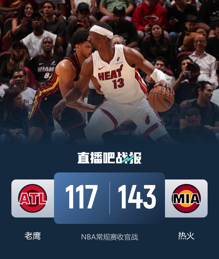 🏀热火3人20+大胜残阵老鹰 阿德巴约25+10 希尔德7三分轰31分