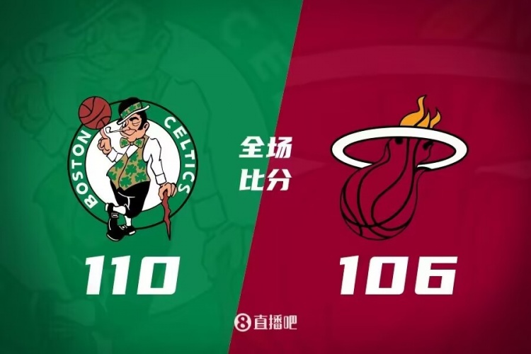 比赛开始,两端开场就陷入缠斗,比分交替领先,凯尔特人内外开花取得两位数优势,热火连投带罚顽强追赶,罗齐尔反击得手,半场战罢凯尔特人59-50领先热火。易边再战,双方围绕10分分差展开激烈争夺,凯尔特人连中三分,热火不断冲击篮筐得手给出回应,末节双方争夺陷入白热化,希罗连中三分缩小分差,但关键时刻热火连续投篮不中,凯尔特人将优势保持到最后。最终,凯尔特人110-106力克热火。
