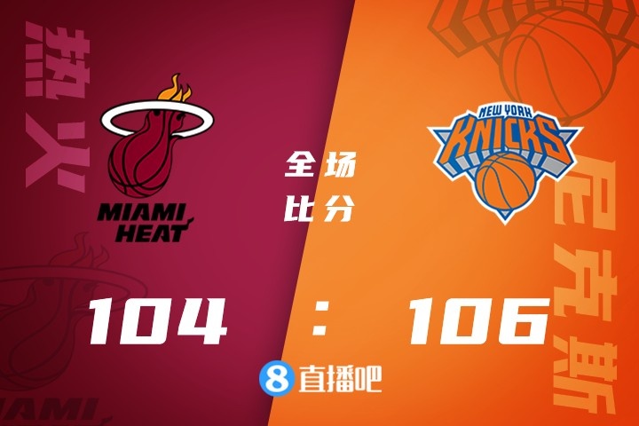比赛上来,热火进攻效率不高,尼克斯外线多点开花,很快建立两位数领先优势,节末热火打出一波7-0迫近比分。次节热火延续势头,很快取得反超,此后两队陷入拉锯战,交替取分,半场结束尼克斯51-48暂时领先。易边再战,热火陷入得分荒,尼克斯上来打出一波11-0重新领先到两位数,随后热火顽强蚕食分差,一度取得反超,不过尼克斯还是稳扎稳打重新拿回优势。很快进入末节,两队再次陷入拉锯战,分差在五分上下浮动,关键时刻两队交替取分,热火没能再抹平差距,希罗绝杀三分不中,最终尼克斯106-104力克热火。