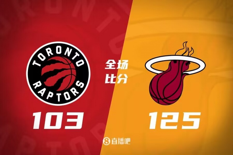 比赛开始,猛龙进攻端比较慢热,特伦特手感始终打不开,而约维奇疯狂出手,巴特勒也上来就攻,热火首发五虎多点开花很快建立主动权,首节热火领先11分,次节双方展开对攻战,巴雷特继续保持不错状态,布鲁斯-布朗接连外线三分助队追分,但哈克斯成为奇兵也是有攻有传,阿德巴约接连内线吃饼半场继续扩大领先。下半场,双方继续拉锯战,巴雷特进攻侵略性很强助猛龙追分,但约维奇外线能回应,希罗接连造杀伤止血后里突外投接连砍分,三节热火继续领先17分,末节巴雷特继续苦苦支撑,但热火多点开花强势回应能拉开20分以上领先,最终热火125-103轻取猛龙,送对手3连败。