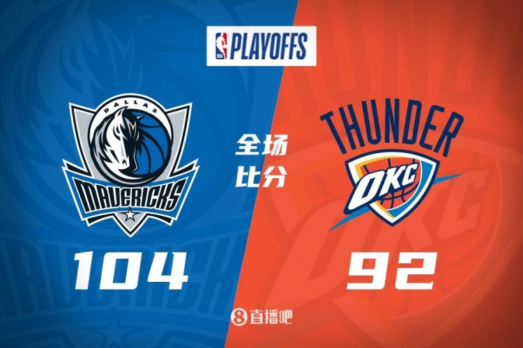 比赛开始,双方开场阶段势均力敌,比分交替领先,独行侠连中三分,雷霆内外开花给出回应,次节东契奇得分助攻一肩挑带队打出12-0的攻击波取得两位数优势,雷霆及时回暖多点开花努力追赶,半场战罢独行侠54-44领先10分。易边再战,独行侠稳定输出保持两位数优势,亚历山大里突外投独得10分苦苦支撑,末节东契奇突然发力连得8分将分差拉开到18分,雷霆奋力反击将分差缩小到个位数,PJ-华盛顿连得5分稳住局势,雷霆苦苦追赶无果,最终,独行侠104-92力克雷霆,攻占天王山。
