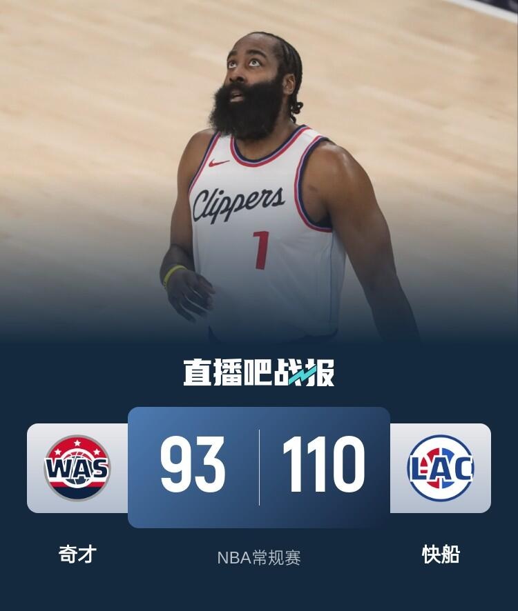 🏀哈登三双 小卡15+7 普尔19中6 快船7人上双送奇才12连败