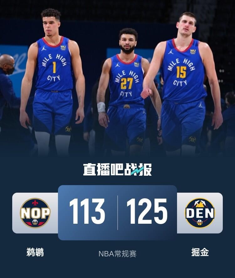 2月4日讯 NBA常规赛今日继续开打,掘金今日坐镇主场迎战鹈鹕。掘金在遭遇一波3连败后即时回暖并拿到2连胜;鹈鹕则祸不单行遭遇5连败,同时后卫核心穆雷跟腱大伤赛季报销。
