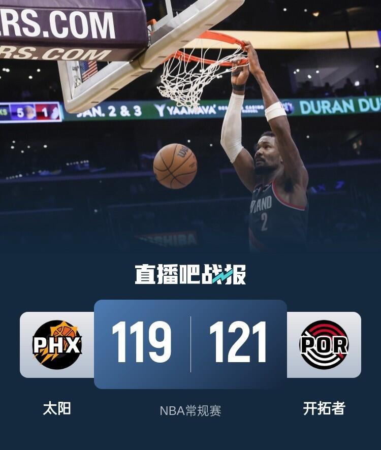 2月4日讯 NBA常规赛,开拓者主场再战太阳。前天两队刚交手,开拓者迎来19分大胜。