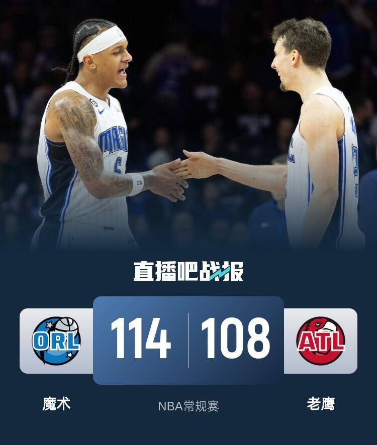 🏀班凯罗36+11+5 小瓦格纳25+7+5 特雷-杨38+4+5 魔术力擒老鹰