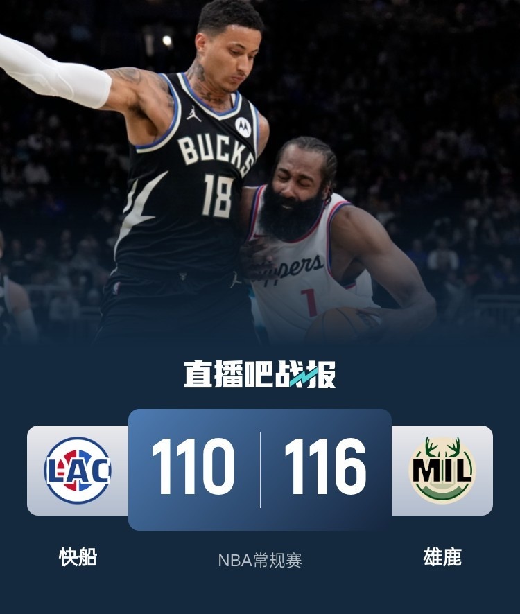 🏀卡登空砍49分 字母哥时间限制 快船3人20+遭雄鹿末节13分逆转