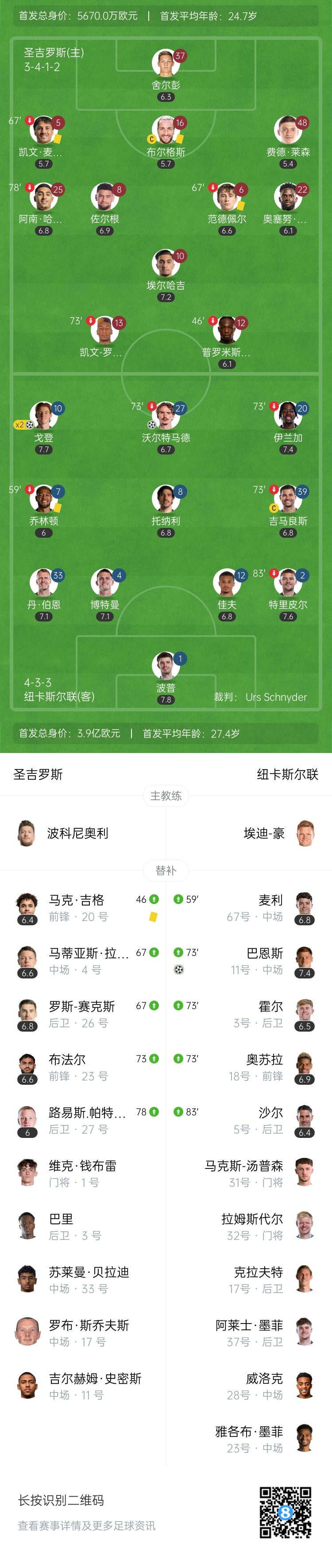 第62分钟,VAR介入再次判罚圣吉罗斯禁区内手球,戈登第二次主罚点球完成梅开二度!纽卡3-0领先圣吉罗斯↓