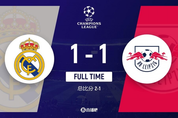 3月7日讯 欧冠1/8决赛次回合,皇马主场对阵莱比锡,双方首回合比赛皇马客场1-0击败莱比锡。此役上半场双方互有攻防但均破门乏术,卢宁精彩扑救救险,易边再战,克罗斯抢点策动,贝林厄姆长途奔袭助攻维尼修斯破门,奥尔班头槌破门扳平比分,补时阶段奥尔莫吊射击中横梁。最终皇马1-1总比分2-1战胜莱比锡晋级八强。