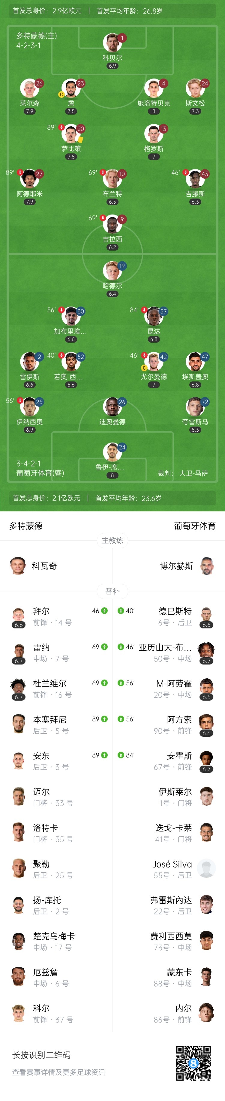 【双方首发及换人信息】