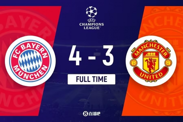 第94分钟,B费主罚任意球开出,卡塞米罗近距离抢点头球破门,拜仁4-3曼联!↓