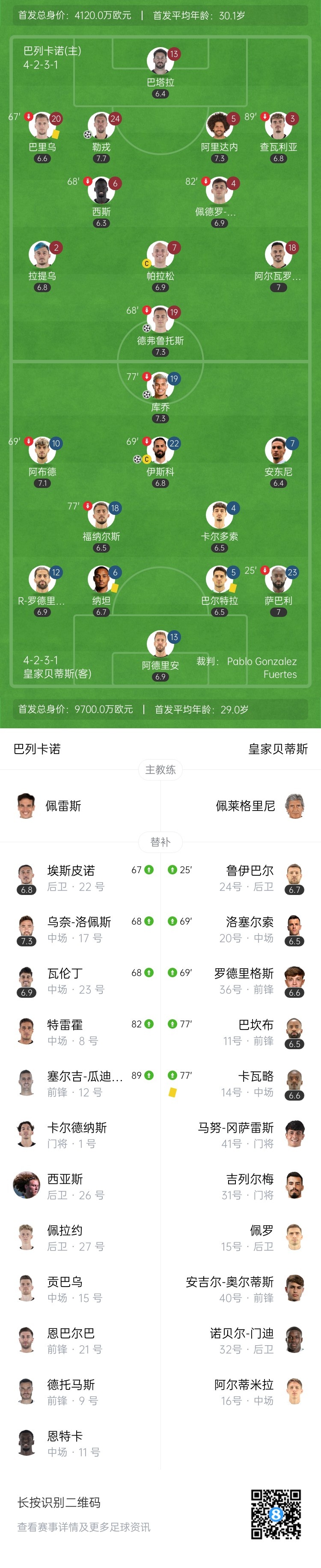 西甲2连平!贝蒂斯2-2巴列卡诺剩2轮距欧冠区5分 伊斯科点射破门