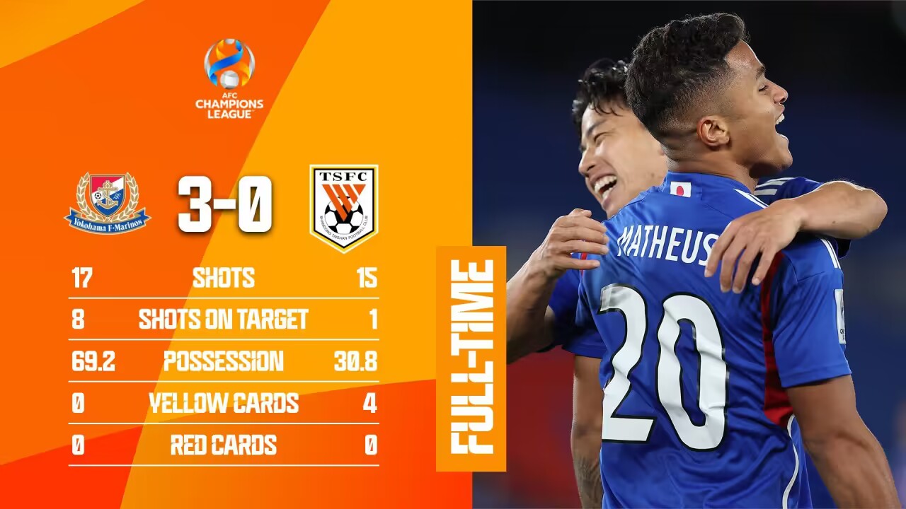 全场比赛结束,山东泰山0-3不敌横滨水手,以小组第二的成绩出线。
