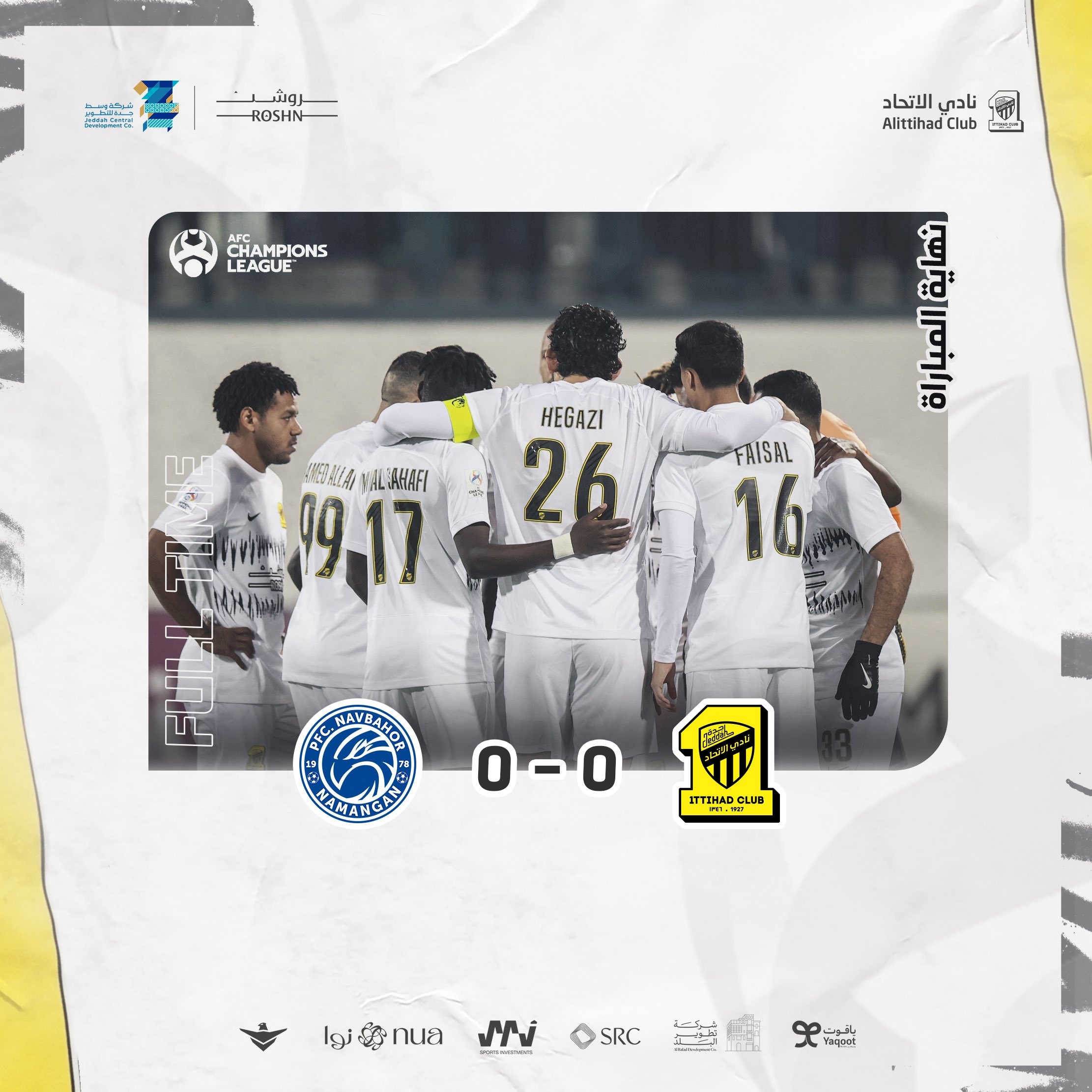 吉达联合:1-阿尔迈伊沃夫、26-赫加齐、33-艾洛拉永、15-谢赫里、37-斯库尔、8-法比尼奥、7-坎特、16-加姆迪、17-萨哈菲(57' 27-艾哈迈德)、90-罗马里尼奥(74' 77-阿姆里)、99-哈姆达拉