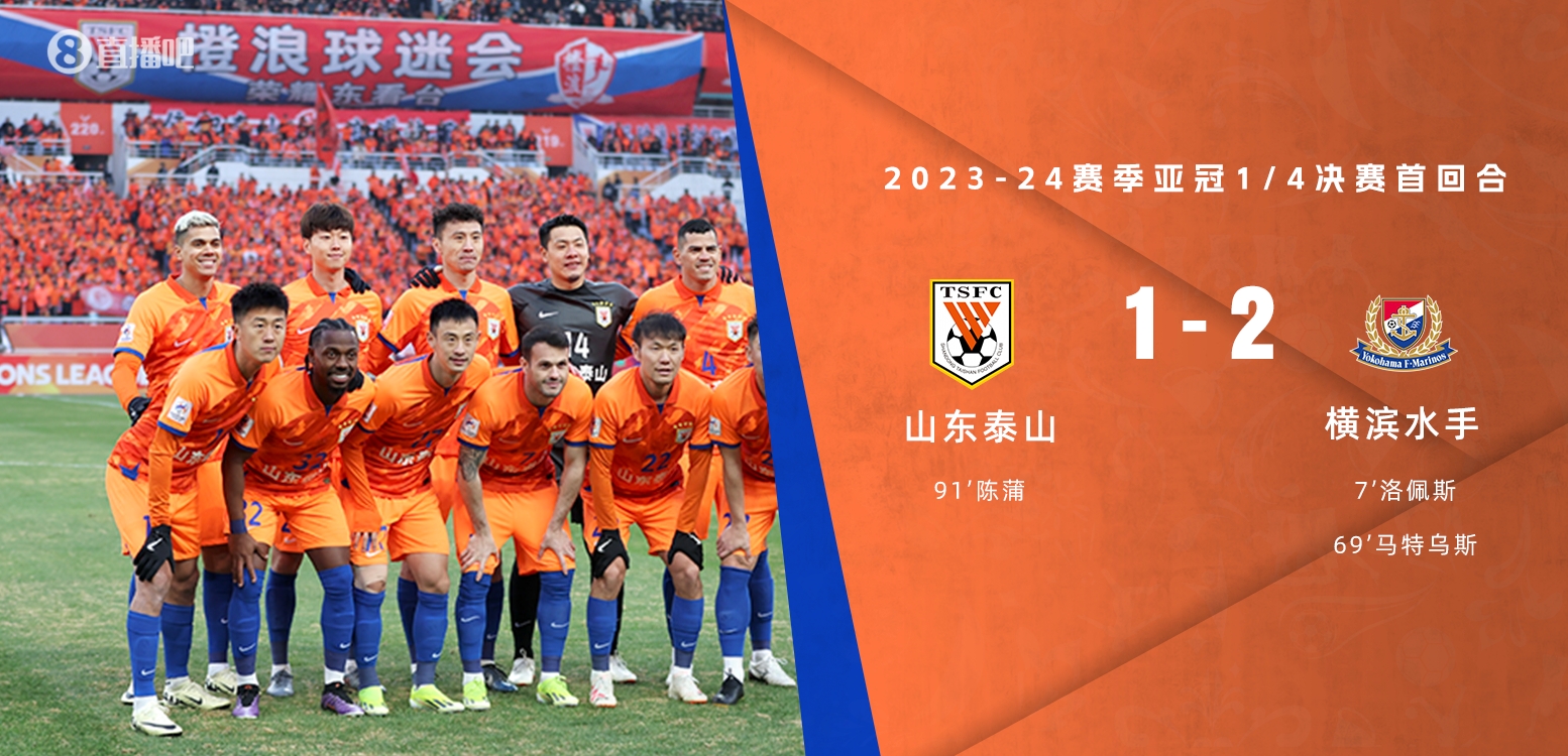 全场比赛结束,山东泰山1-2横滨水手。
