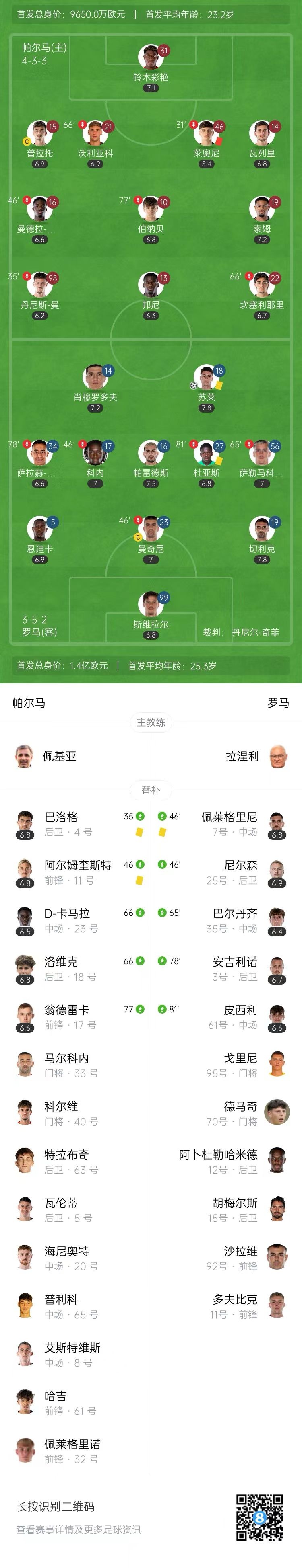 【双方比赛阵容】