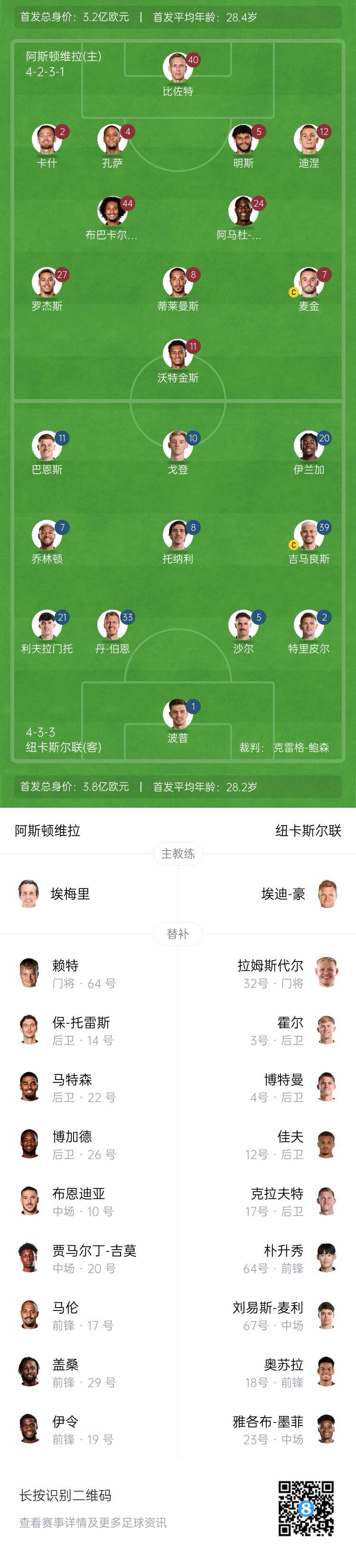 【双方首发以及换人信息】