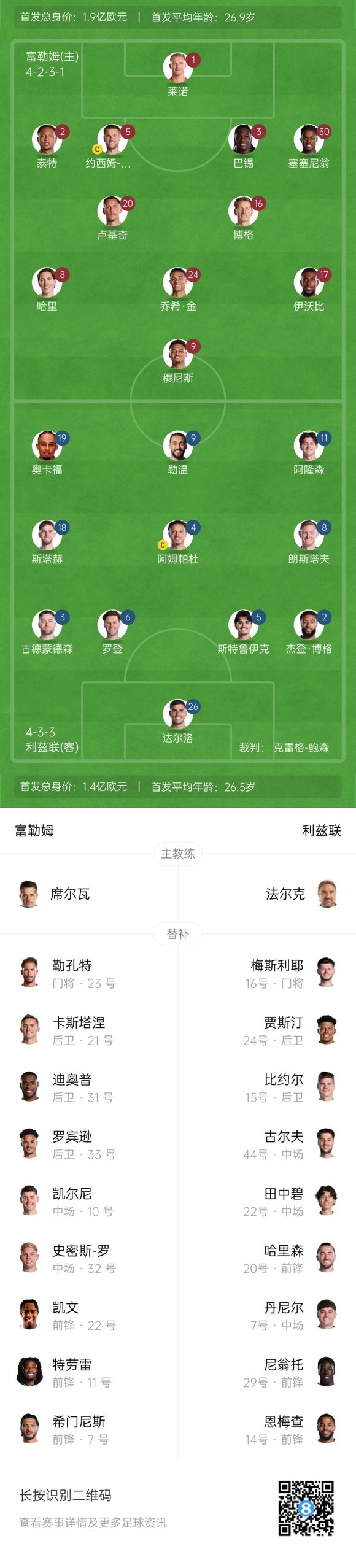 补时绝杀!富勒姆1-0利兹联收获首胜 古德蒙德森乌龙球达洛献神扑