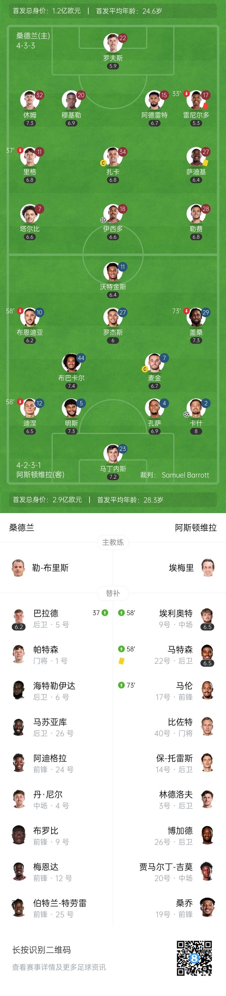 5轮0胜!维拉1-1十人桑德兰 卡什打进维拉赛季首球 扎卡送助攻