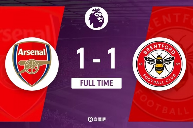 下半场补时5分钟,阿森纳1-1布伦特福德。