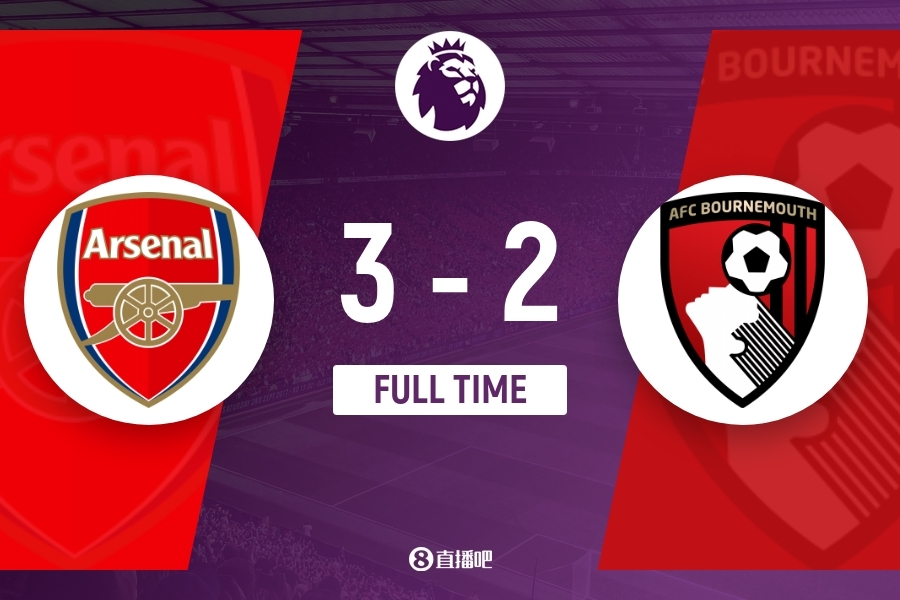 全场比赛结束,阿森纳3-2伯恩茅斯。