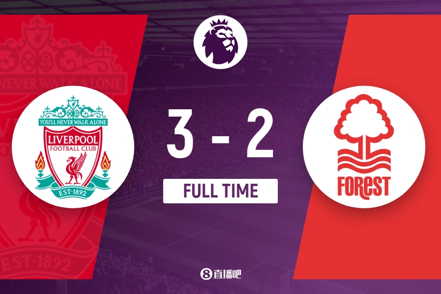 全场比赛结束,利物浦3-2击败诺丁汉森林。