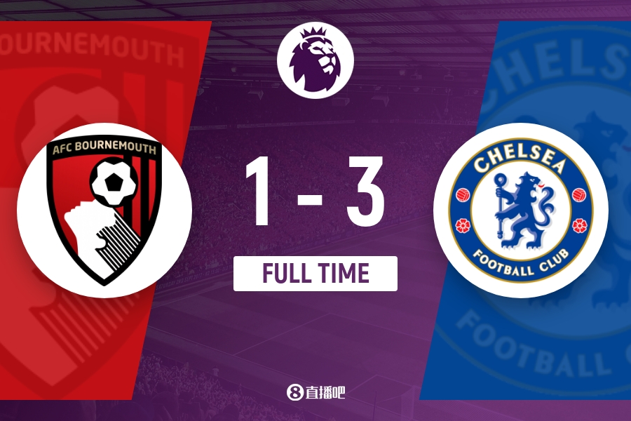 全场比赛结束,切尔西3-1击败伯恩茅斯。
