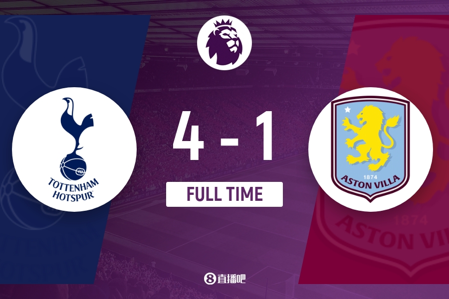 全场比赛结束,热刺4-1阿斯顿维拉。