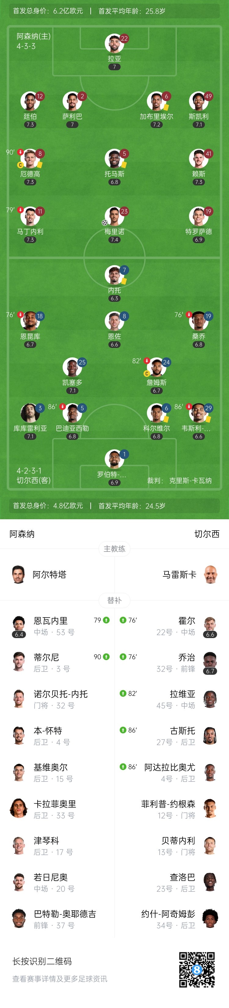 下半场伤停补时4分钟,全场结束,最终阿森纳1-0切尔西。