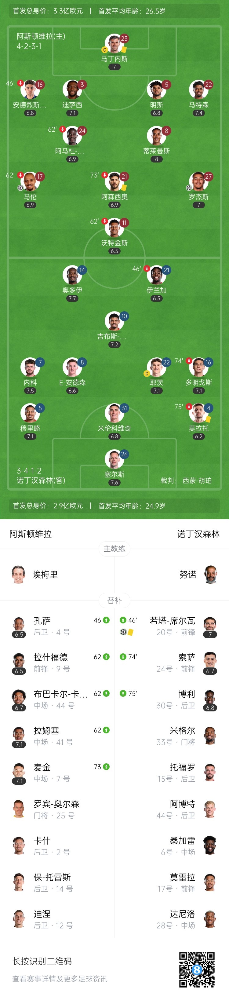 各赛事8连胜!维拉2-1终结森林3轮连胜 罗杰斯&马伦破门