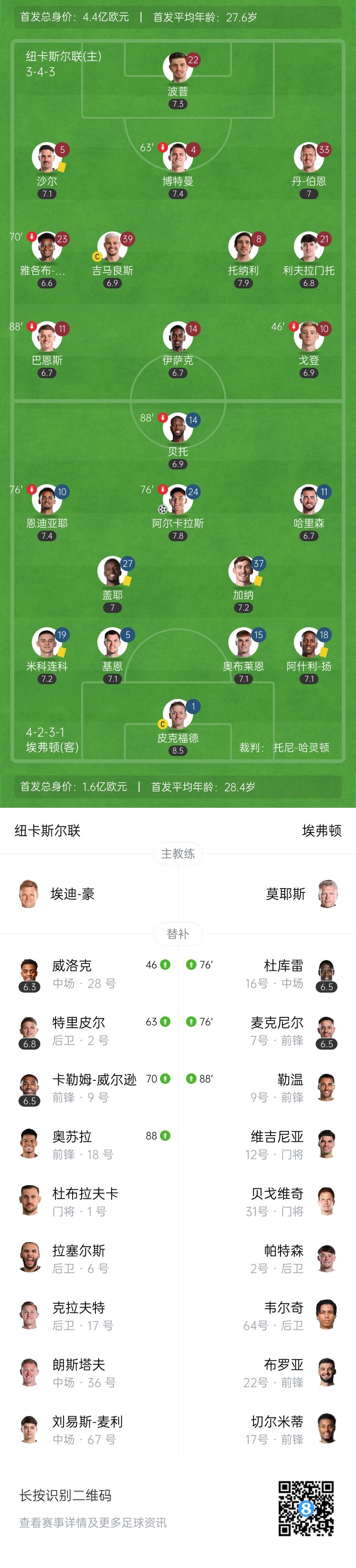 惊险进欧冠!纽卡0-1埃弗顿第5名收官 阿尔卡拉斯头槌破门