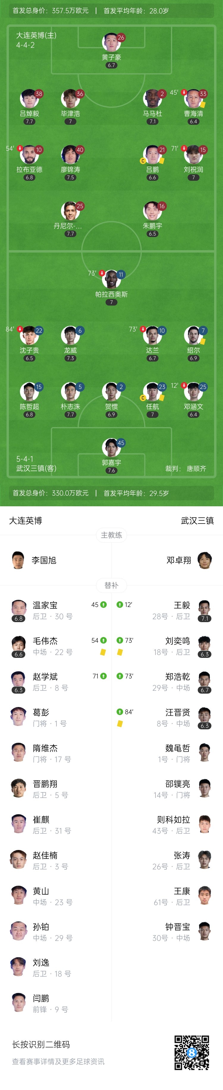 【双方首发及换人信息】