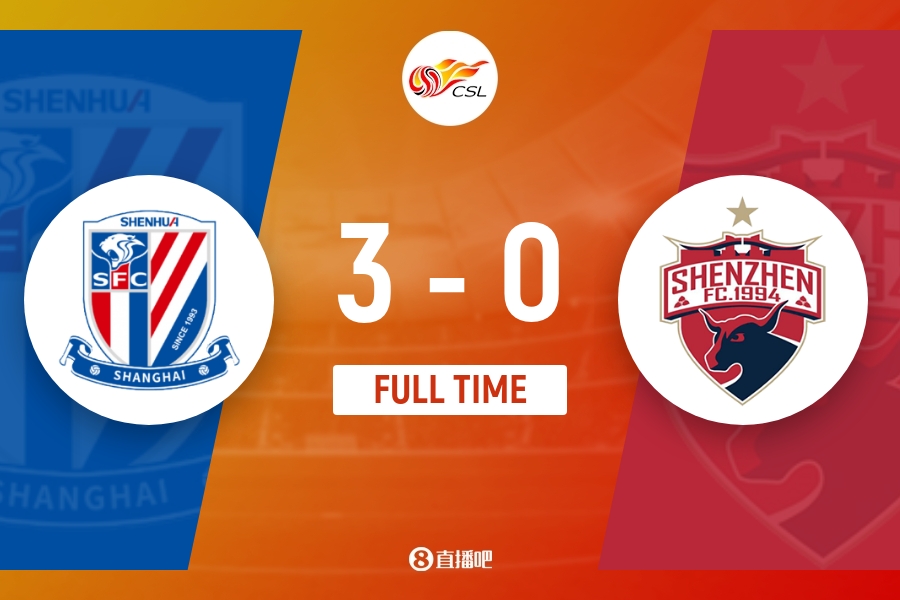 全场比赛结束,上海申花3-0深圳。