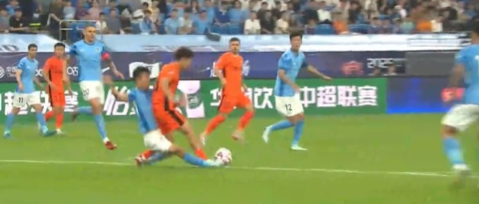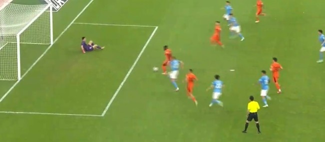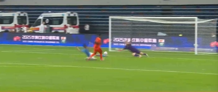 第9分钟,云南获得点球!胡睿宝禁区身后铲倒叶楚贵犯规,随后裁判经过var提示判罚点球,奥斯卡主罚点球被扑出,随后跟上补射破门,深圳0-1云南玉昆。↓