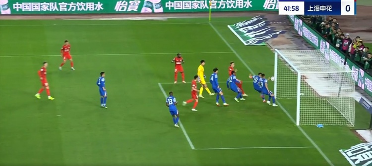 第8分钟,申花前场右侧定位球开到禁区,路易斯头球攻门角度太正被门将没收,同时也是越位在先了↓