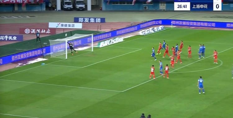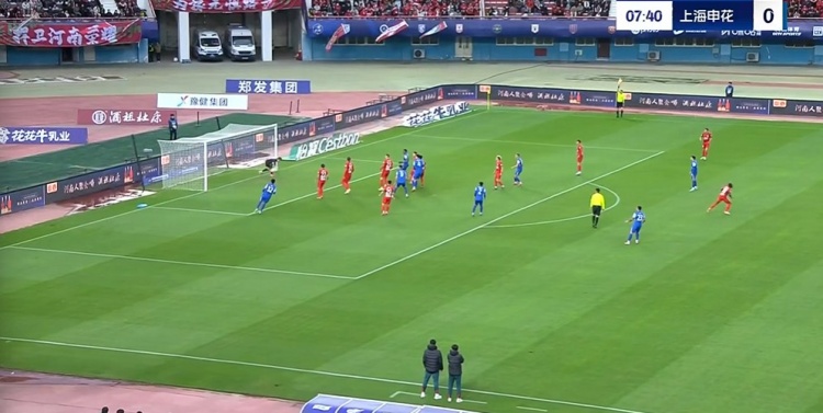 第42分钟,王上源定位球开到禁区,鲍亚雄出击失误造成申花禁区内一片乱战,吴曦门线极限解围,后续阿奇姆彭左侧得球再传中,迈达纳近距离头槌破门!VAR介入后确认进球有效,河南主场1-0领先↓