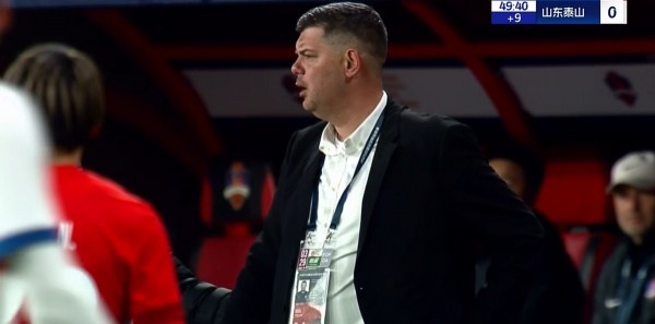 上半场补时第5分钟,主裁判向梅州客家主帅米兰-里斯蒂奇出示黄牌警告。↓